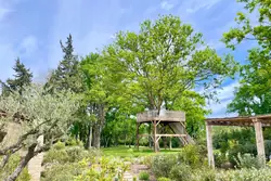 À l'extérieur, votre havre de paix s'étend sur 1,5 hectare d'un jardin paysagé où oliviers centenaires, lavandes et fontaines murmurent au gré du vent. Au bord de la piscine chauffée, prélassez-vous sous le soleil provençal avant de vous ressourcer dans le hammam du pool-house ou de profiter d'une séance de sport avec vue sur la nature. Le terrain de pétanque vous convie à des moments conviviaux, tandis qu'une cabane perchée dans les arbres vous offre une retraite secrète, idéale pour une parenthèse méditative avec une superbe vue sur le massif des Alpilles.