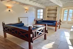 Elle se compose d'un salon chaleureux mettant en valeur de superbes pierres apparentes et des poutres qui lui confèrent tout son charme, ainsi que d'un espace de réception bénéficiant d'une magnifique hauteur sous plafond. Vous trouverez également une cuisine ouverte sur la salle à manger, une buanderie et une salle de bain avec wc indépendant.