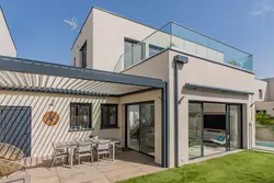 Maison économe en énergie : menuiserie alu double vitrage, clim gainable.
