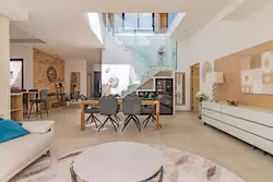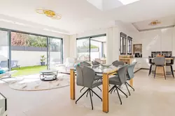 En rez-de-chaussée : Très grande pièce de vie baignée de lumière en accès direct sur la piscine et la terrasse.