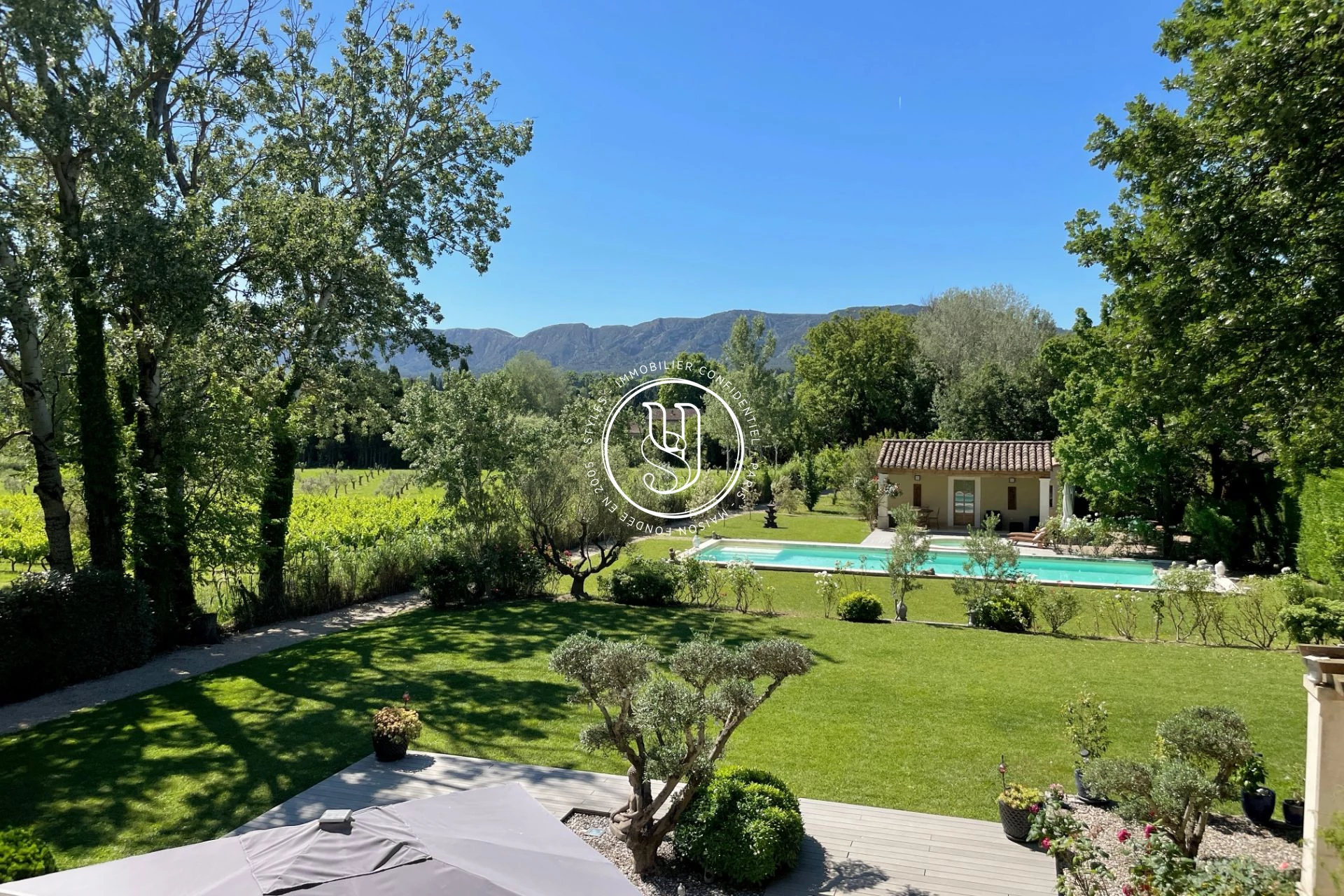 À l'extérieur, les prestations rivalisent de splendeur : vaste terrasse ensoleillée, pool house, jacuzzi et majestueuse piscine chauffée de 15 x 5 m s'inscrivent dans un écrin de verdure soigneusement entretenu. L'ensemble se déploie face à un panorama à couper le souffle, où les Alpilles se dessinent à l'horizon dans une harmonie parfaite entre nature et architecture.