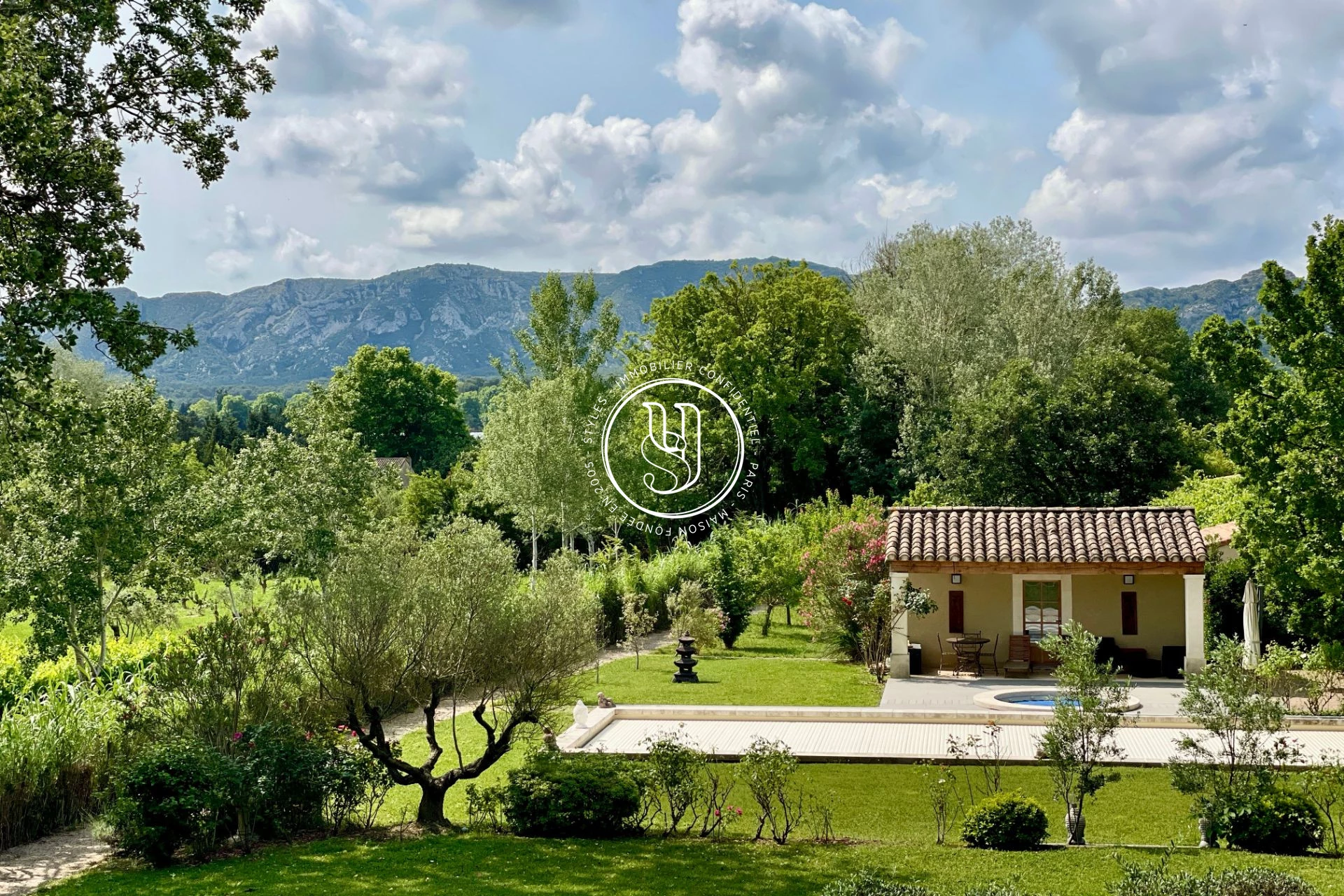 Érigée sur un terrain paysagé d'environ 3 250 m², cette demeure d'environ 285 m² s'inscrit dans une atmosphère sereine, à l'abri des regards et bercée par une vue spectaculaire sur l'emblématique massif des Alpilles.