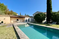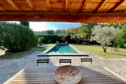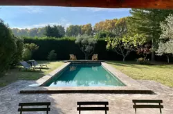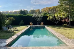 À l'extérieur, l'espace piscine (12 x 4 m) et sa terrasse couverte invitent à la détente, à l'abri du soleil. Chaque détail a été pensé pour profiter pleinement des beaux jours provençaux dans un cadre apaisant.