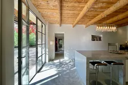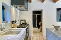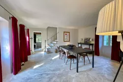 Les pièces de vie, baignées de lumière grâce à de grandes ouvertures cintrées, s'articulent autour d'un salon convivial, d'une vaste salle à manger avec sa cheminée en pierre et d'une cuisine élégante et parfaitement équipée, complétée par une arrière-cuisine.