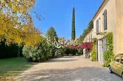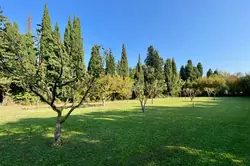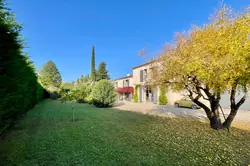 Nichée au cœur d'un jardin paysager soigneusement entretenu, la propriété s'épanouit sous l'ombre d'un platane centenaire, offrant une atmosphère paisible et raffinée.