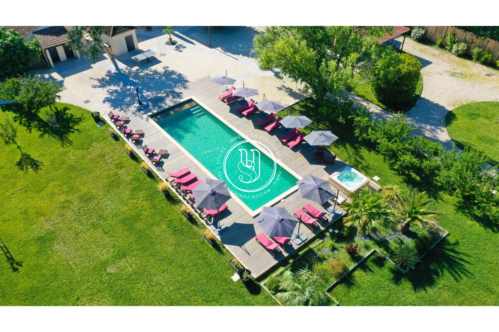 piscine extérieure chauffée, agrémentée d'un jacuzzi, d'un sauna, d'un hammam, d'un pool-house et d'une cuisine d'été, pour profiter pleinement de la douceur de Provence.