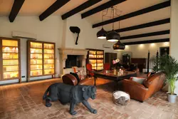 Le bâti principal s'ouvre sur des volumes généreux et lumineux, avec un salon rotonde en verrière de 130 m2 donnant sur le parc ; une pièce de vie d'exception. L'aménagement intérieur se complète d'une cuisine semi-professionnelle, une salle à manger conviviale, idéal pour des moments chaleureux en famille ou entre amis.