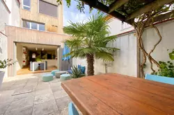 Sur 3 niveaux, elle se compose au rez-de-chaussée d'une vaste pièce de vie traversante avec cuisine ouverte prolongée par une agréable cour aménagée et végétalisée... Un véritable effet "dedans-dehors". Une pièce de rangement pouvant servir de bureau complète le niveau.