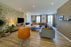 Avec deux entrées — l'une donnant de la rue avec un double garage, l'autre au niveau du jardin — l'organisation des lieux a été pensée pour conjuguer élégance et praticité. Le vaste salon de 60m² baigné de lumière offre des vues imprenables des deux côtés : sur les collines verdoyantes de la vallée de l'Eure d'un côté, et sur le jardin privé de l'autre. Une cheminée à gaz apporte une ambiance chaleureuse, idéale pour les soirées conviviales ou paisibles.