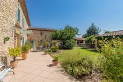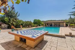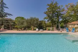 A l'extérieur, juste derrière une cour ensoleillée et abritée, se trouve des dépendances dont une avec une terrasse couverte de 40m2 donnant sur la piscine (7x15m avec jacuzzi). Les jardins sont magnifiquement entretenus.
