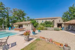 Située dans un joli village tranquille à dix minutes d'Uzès, cette maison de campagne magnifiquement rénovée se trouve sur un terrain d'environ 4500 m².