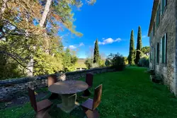 À l'extérieur, des terrasses dans leur cadre de verdure invitent à la contemplation, tandis qu'une source naturelle murmure non loin, ajoutant à la magie du lieu. Lové aux pieds du double escalier qui mène à la bâtisse, un ancien buffet d'eau dans son bassin rond ne demande qu'à être dégagé et remis en fonction pour rendre toute sa magie à ce parterre d'accueil. Enfin, un espace piscine ensoleillé ainsi que des dépendances, un bucher, un atelier et garage complètent les annexes.