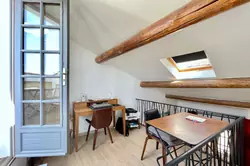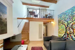 A l'étage supérieur, une pièce dressing ainsi qu'une salle de bain. Par la suite, un salon avec espace mezzanine - à envisager en bureau ou chambre -, donnant sur une terrasse aux vues superbes sur les toits d'Uzès et la campagne alentours.